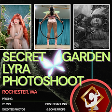 For the fairies who want to escape this realm and welcome Spring with a flirty flair, YogaFit101 Studio and Minerva Media invite you to a 25-minute photoshoot designed exclusively for lyra fairies. We will provide a colored or black backdrop, some props of your choice (bunny ears, fairy wings, wands, flowers, butterflies, lights -- but feel free to bring your own!), a fog machine and themed lighting to produce 10 beautifully retouched photos that you can use for multiple purposes: a fun way to promote your upcoming shows/classes/workshops, celebrate your progress in lyra, or even play with a character you enjoy being. The lyra will be sitting roughly between 1'5" and 3'5" from the ground, and a ladder can be provided if requested. Every booking includes: - 10 edited & retouched, high quality photos - Your choice of final edits - Some props (bunny ears, fairy wings, wands, flowers, lights) - Assisted pose coaching (if needed) - Optional add-ons at checkout *You do not need to be a seasoned lyra dancer to participate, however, you must be comfortable with sitting on a moving hoop in the air and holding multiple poses.* Hauser and Jenna will provide pose coaching during your session. There is a bathroom on site, however, you must arrive to the shoot ready to go! This means having your makeup and outfit on. There will be a 5 minute buffer between folks to select props. Every body and style is welcome, whether you love repping Easter, paganism, the dark/gothic vibe, or just want to have some spring, fairy fun! Spots are limited! Nervous about posing on the spot?? You can prep the night before the shoot by booking a 1 hour pose coaching class for just $10 & get a feel for the shoot space! Learn more at https://www.yogafit101.com/